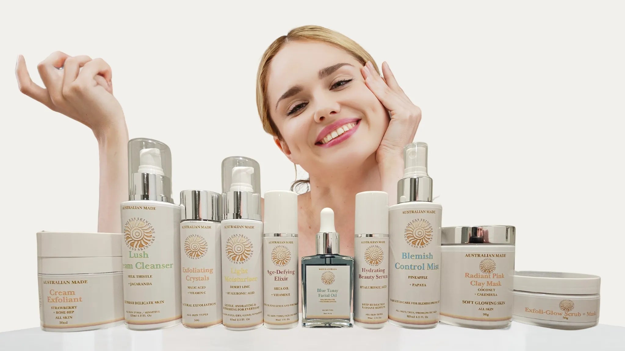 Natural, vegan-friendly skincare designed to restore radiance, smooth fine lines, and work with your skin, not against it. Discover a routine that feels effortless, honest, and truly transformative.